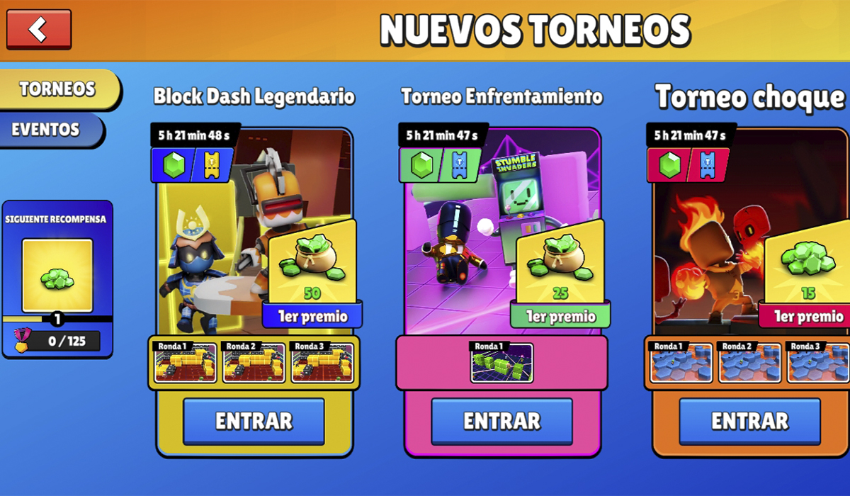 Los torneos son eventos especiales en Stumble Guys donde los jugadores compiten por premios exclusivos, incluidas gemas.